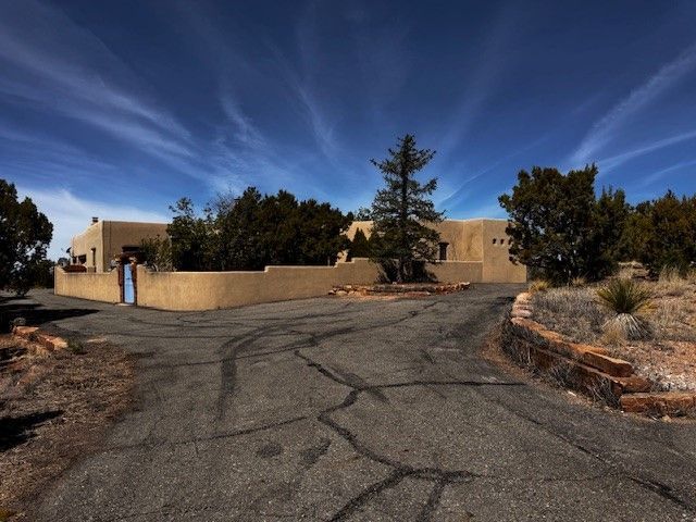 Yes! There is a home available in Campo Conejos! Dream 3224 esf home has 4 bedrooms, 4 baths situated on 1.612 acres. A walled in courtyard will lead you to adobe accented and diamond plaster with versatile floor plan. Large living room featuring kiva, vigas, bancos intended to give the Santa Fe feel, as well as glass block filtering in light (note the etched glass block throughout). Leading to plentiful hickory cabinetry kitchen with eat at granite center island; a breakfast nook to meet any fancy. Arched entry into a formal dining or other functional living space leads to exterior courtyard. Owners suite includes office (with half bath), kiva fireplace, 2 walk in closets as well as a jetted tub with separate shower. Exterior access leads to your back yard to enjoy the sunsets. The other side of your home has three bedrooms; two with outdoor access, the third to enjoy the front yard gardens; with a full bath conveniently located. Studio space has supply closet with 3/4 bath and exterior entrance leading to patio. Natural light pours in with two large picture windows. This versatile space could pose as a MIL quarters, guest house; built for creativity. Laundry room can be found just outside heated space connecting to three car garage with opportunity for work benches and storage. You will have additional parking with turnouts and car/toy storage availability.
